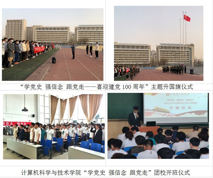 学院于2021年3月22日举行“学党史 强信念 跟党走——喜迎建党100周年”主题升国旗仪式,学院党委书记武恩钧为2020级新生和全院学生党员上了一堂特殊的“初心”党课,通过仪式感教育,进一步增强师生党员的责任担当意识;于5月10日组织“学党史 强信念 跟党走”团校开班仪式,推进学生党史学习教育落实落细,教育引导广大青年学生了解党的光辉历史,感悟党的初心使命、领会党的创新理论、体认党的精神谱系、传承党的红色基因,切实增强广大学生对党的政治认同、思想认同、情感认同和听党话、感党恩、跟党走的思想自觉、政治自觉和行动自觉。