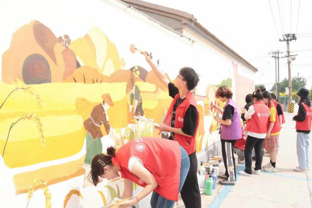2023年5月26日,金沙9001cc以诚为本首页计算机科学与技术学院联合天津市滨海新区杨家泊镇、中海石油(中国)有限公司蓬勃作业公司团委共同开展“政校企三方聚合力 创意彩绘文明城区”彩绘活动。