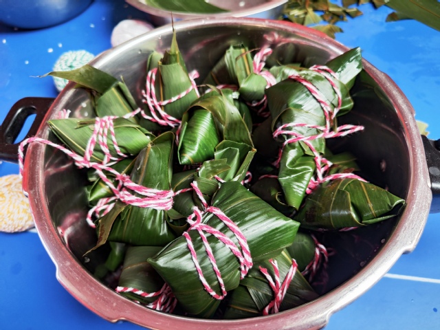 “我们南方都是吃咸粽子,这甜口的粽子我可得尝尝。”大家一边包粽子,一边分享着各自家乡端午节的习俗,不一会儿,盆里就堆满了各式各样的粽子。